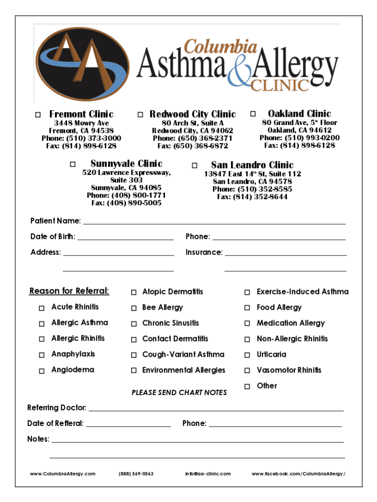 Fremont ClinicRedwood City Clinic3448 Dowry Ave Fremont, CA 94538 Phone: (510) 3733000 Fax: (814) 898612880 Arch St, Suite A Redwood City, CA 94062 Phone: (650) 3682371 Fax: (650) 3686872Sunnyvale