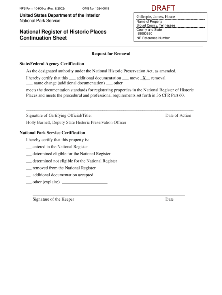 NPS Form 10900a (Rev. 8/2002)OMB No. 10240018United States Department of the Interior
