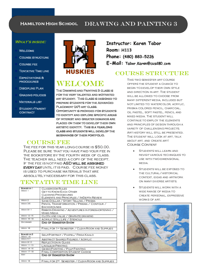 Hamilton High SchoolDrawing and Painting 3Whats inside:Instructor: Karen Tabor