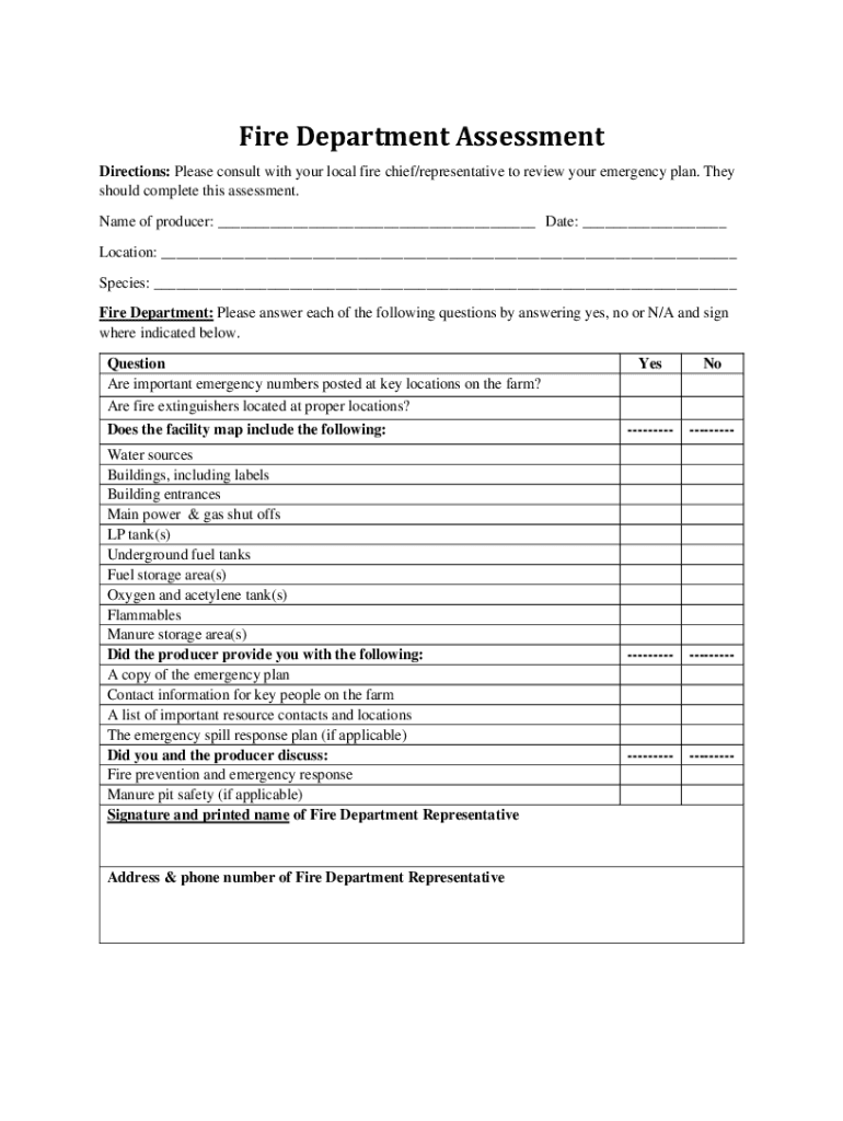 Fire Department Assessment Directions: Please consult with your local fire chief/representative to review your emergency plan. They should complete this assessment. Name of producer: ___ Date: ___
