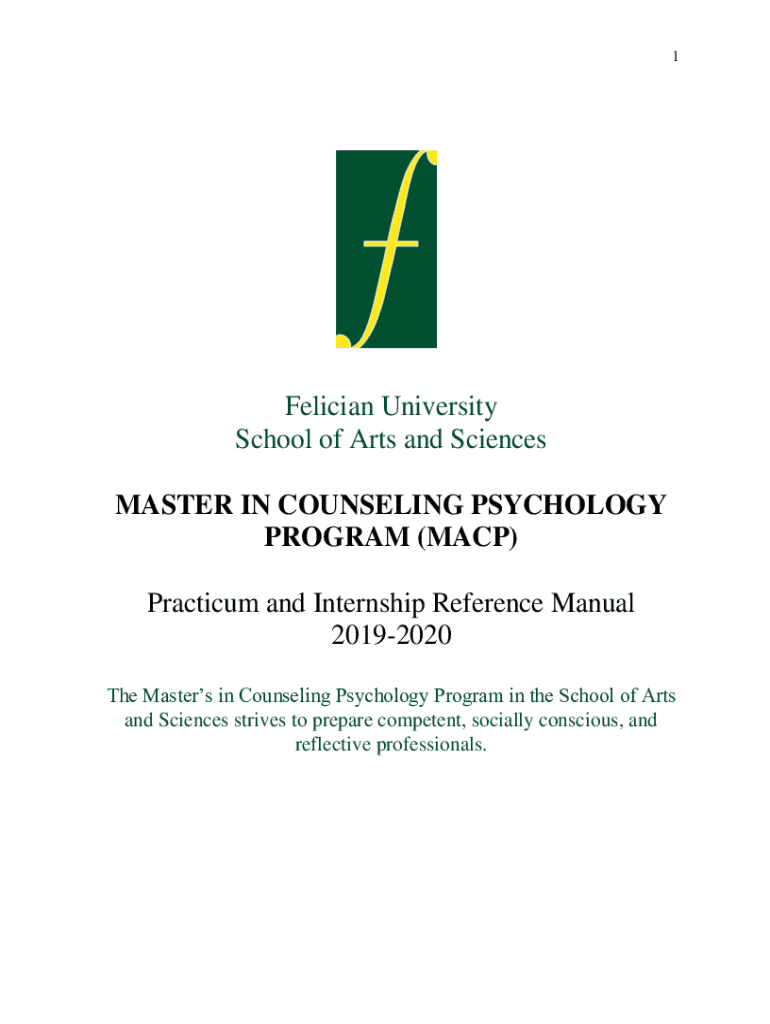 1Felician University School of Arts and Sciences MASTER IN COUNSELING PSYCHOLOGY PROGRAM (MAP) Practicum and Internship Reference Manual 20192020 The Masters in Counseling Psychology Program in the