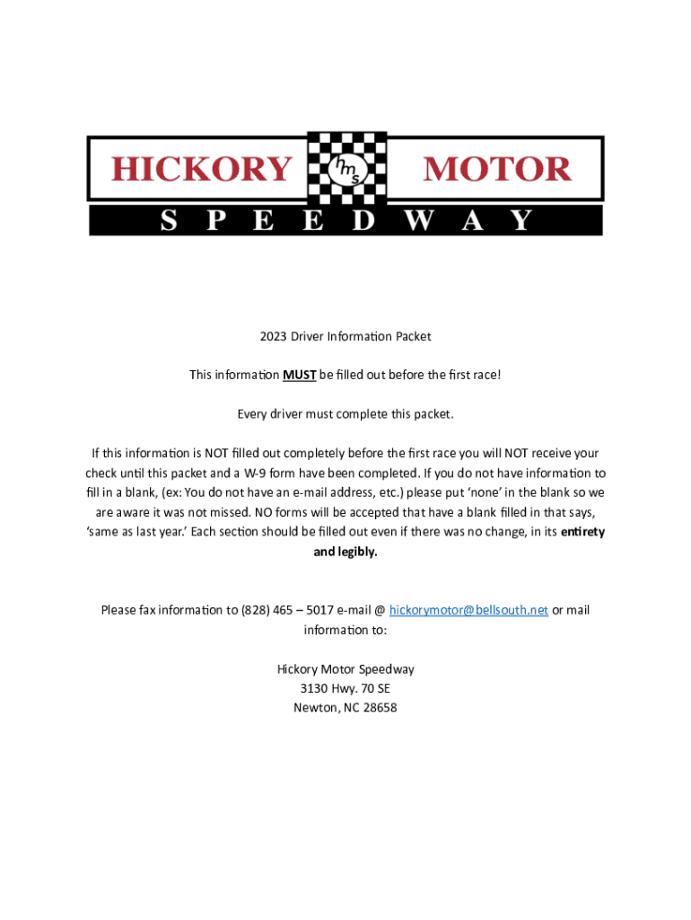 This informs on MUST be led out before the RST race! Every driver must complete this packet. If this informs on is NOT led out completely before the RST race you will NOT receive your check un l this