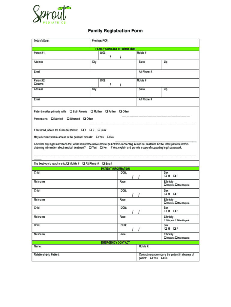 Pediatric Family Registration Form is not the form you're looking for?Search for another form here.