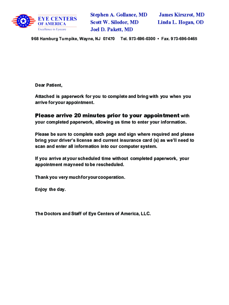 Stephen A. Glance, MD Scott W. Floor, MD Joel D. Parent, MD 968 Hamburg Turnpike, Wayne, NJ 07470James Kirszrot, MD Linda L. Hogan, Often. 9736960300 Fax. 9736960465Dear Patient, Attached is paperwork