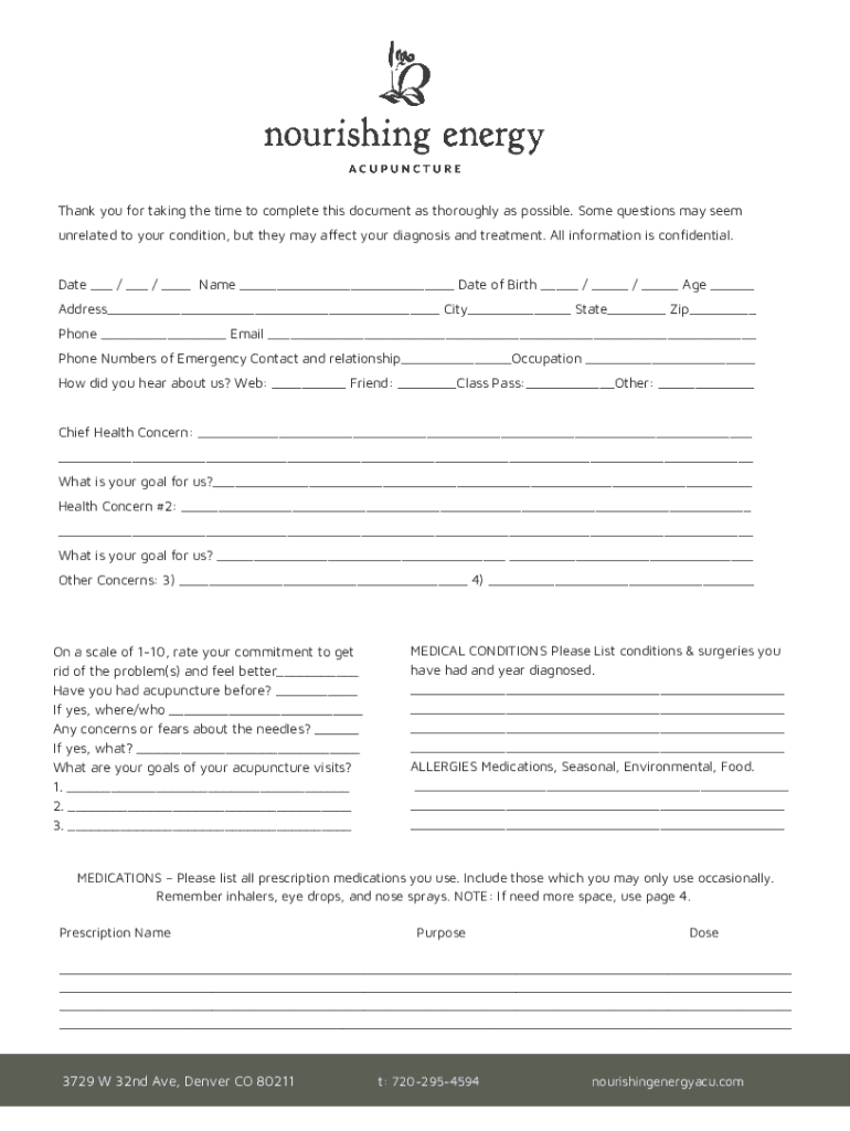 Thank you for taking the time to complete this document as thoroughly as possible. Some questions may seem unrelated to your condition, but they may affect your diagnosis and treatment. All information