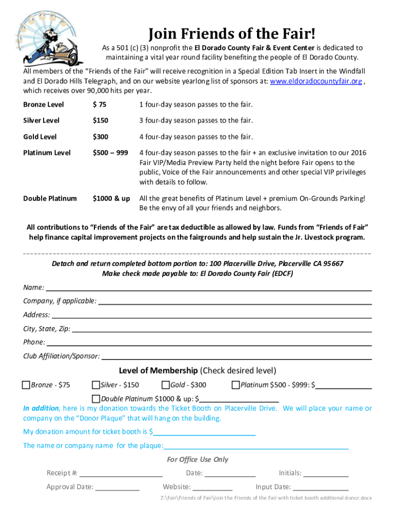 Join Friends of the Fair! As a 501 (c) (3) nonprofit the El Dorado County Fair & Event Center is dedicated to maintaining a vital year round facility benefiting the people of El Dorado County. All