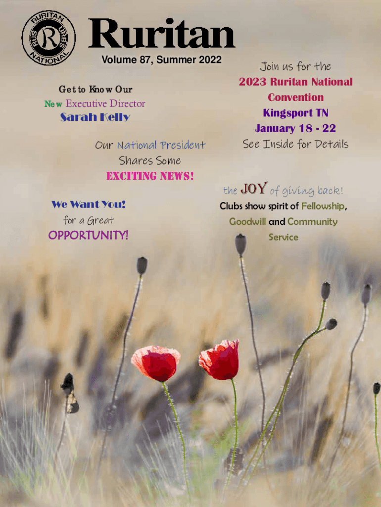 Volume 87, Summer 2022 Get to Know Our Executive Director Sarah Kelly Our National President Shares Some exciting news! We Want You! For a GreatOPPORTUNITY! Join us for the 2023 Puritan National Convention