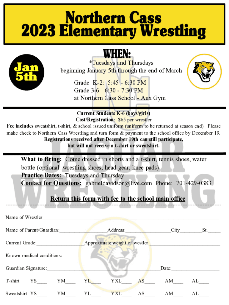 *Tuesdays and Thursdays beginning January 5th through the end of March Grade K2: 5:45 6:30 PM Grade 36: 6:30 7:30 PM at Northern Class School Aux Gym Current Students K6 (boys/girls) Cost/Registration: