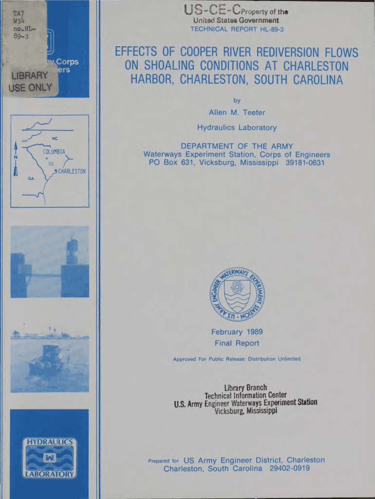 USE Property of theTA7 W34 nooHLUnited State Government TECHNICAL REPORT HL893893EFFECTS OF COOPER RIVER DIVERSION FLOWS ON SHOALING CONDITIONS AT CHARLESTON HARBOR, CHARLESTON, SOUTH CAROLINALIBRARY