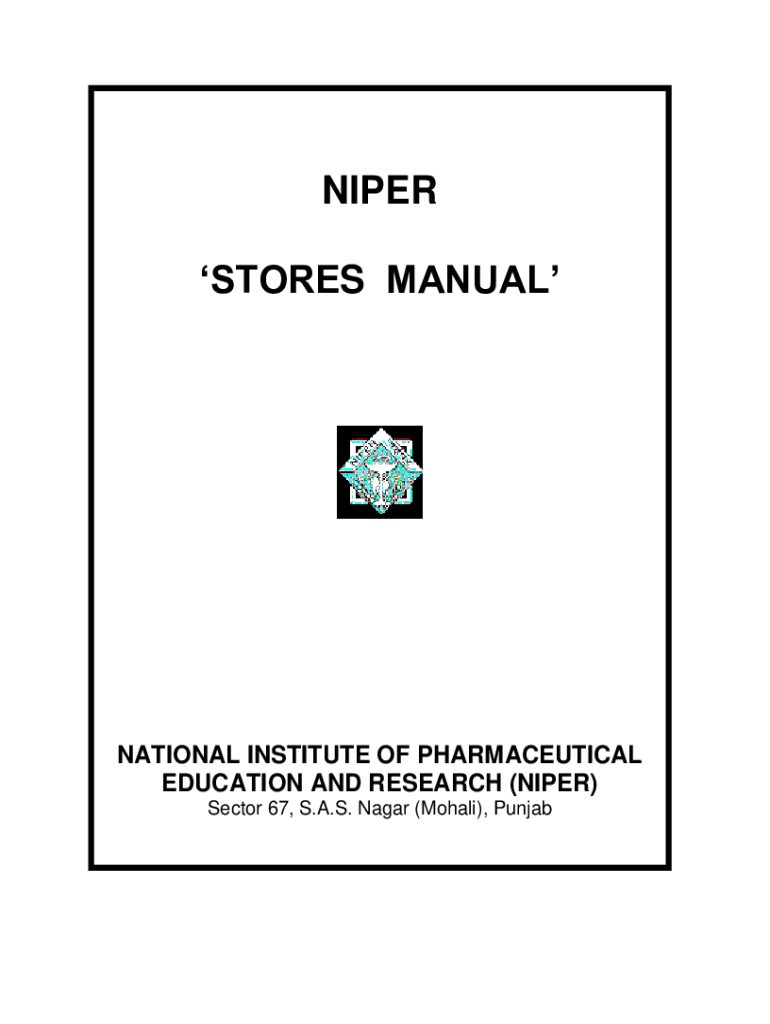 SNIPER STORES MANUALNATIONAL INSTITUTE OF PHARMACEUTICAL EDUCATION AND RESEARCH (SNIPER) Sector 67, S.A.S. Nagar (Moral), PunjabINDEX S. No. Description Page No. I. Introduction of Stores in NIPER1II.