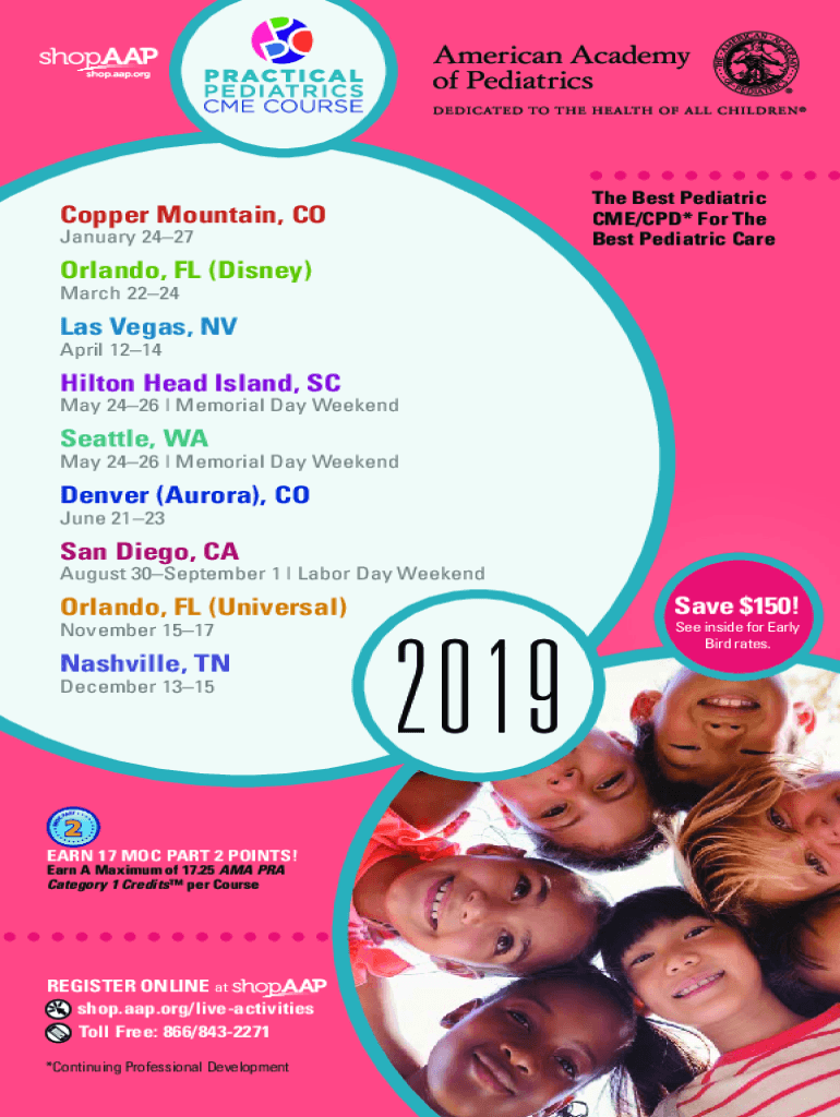 The Best Pediatric CME/CPD* For The Best Pediatric Rapper Mountain, CO January 2427Orlando, FL (Disney) March 2224Las Vegas, NV April 1214Hilton Head Island, SC May 2426 | Memorial Day Weekend Seattle,