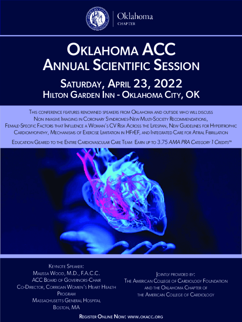 Oklahoma Accentual Scientific Session Saturday, April 23, 2022Hilton Garden Inn Oklahoma City, OK This conference features renowned speakers from Oklahoma and outside who will discuss Non-invasive