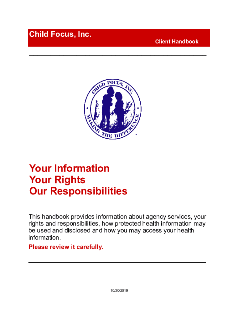Child Focus, Inc. Client Handbook___Your Information Your Rights Our Responsibilities This handbook provides information about agency services, your rights and responsibilities, how protected health