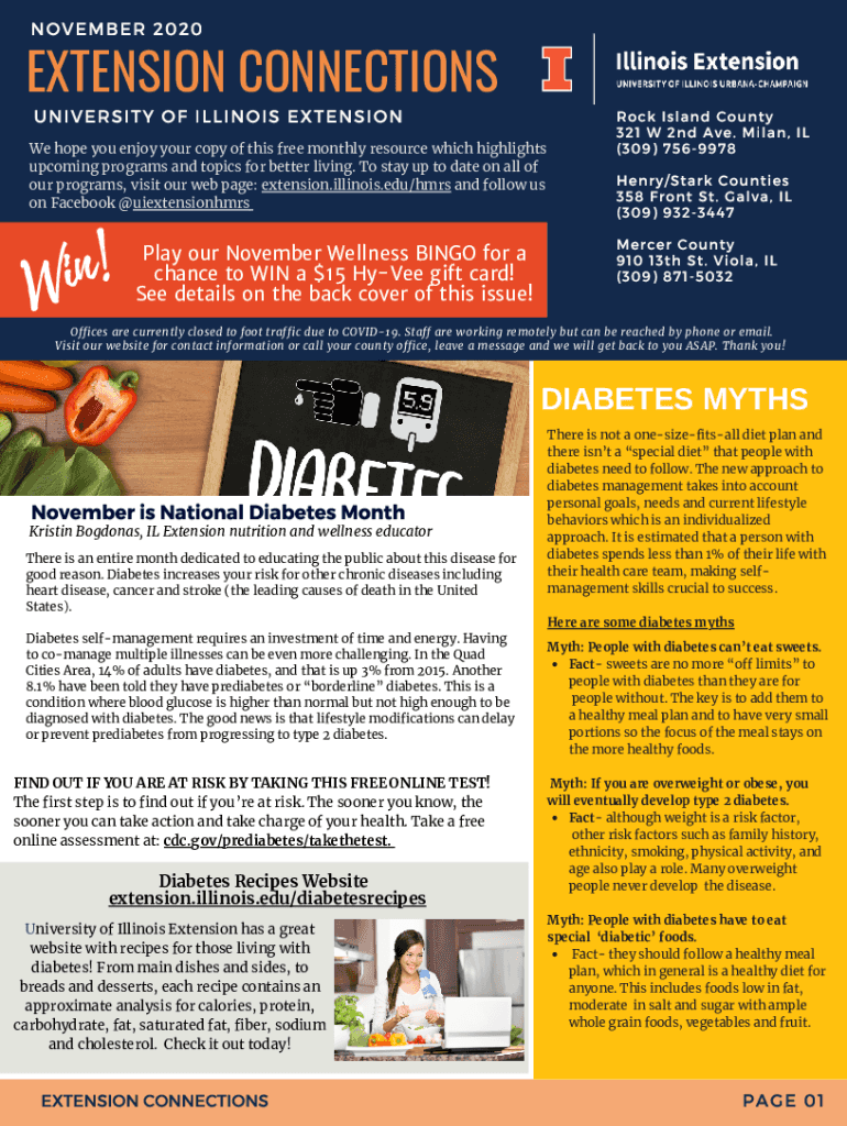 NOVEMBER 2020EXTENSION CONNECTIONS UNIVERSITY OF ILLINOIS Extension hope you enjoy your copy of this free monthly resource which highlights upcoming programs and topics for better living. To stay