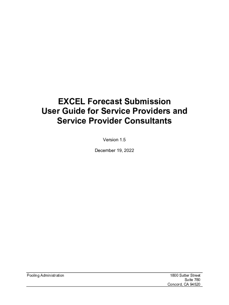 EXCEL Forecast Submission User Guide for Service Providers and Service Provider Consultants Version 1.5 December 19, 2022Pooling Administration1800 Sutter Street Suite 780 Concord, CA 94520CHANGE