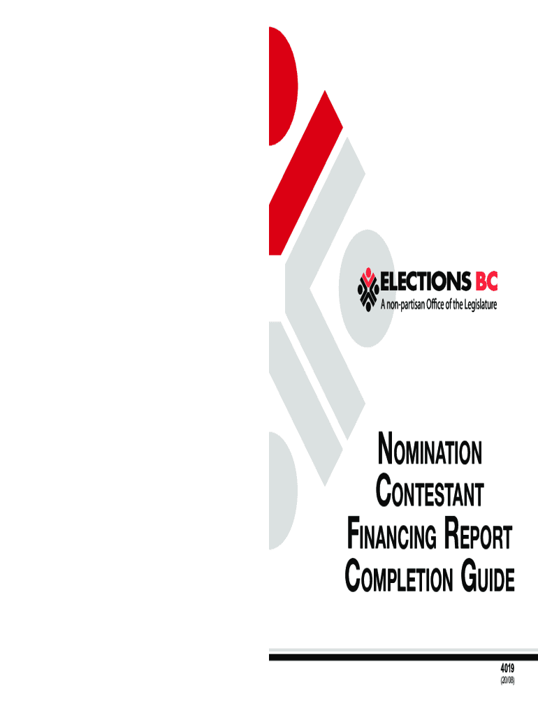 Nomination Contestant Financing Report Completion Guide 4019(20/08)4019(20/08)Nomination Contestant Financing Report Completion Suitable of Contents Introduction. . . . . . . . . . .1 Privacy. . .
