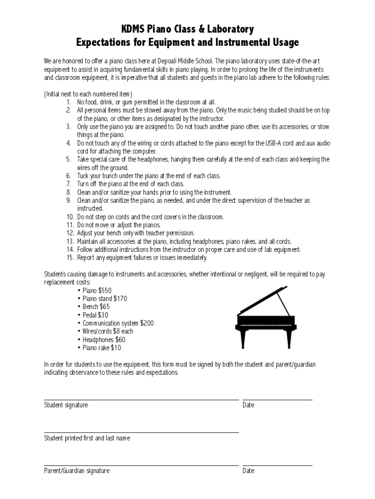 DMS Piano Class & Laboratory Expectations for Equipment and Instrumental Usage We are honored to offer a piano class here at Nepali Middle School. The piano laboratory uses stateoftheart equipment