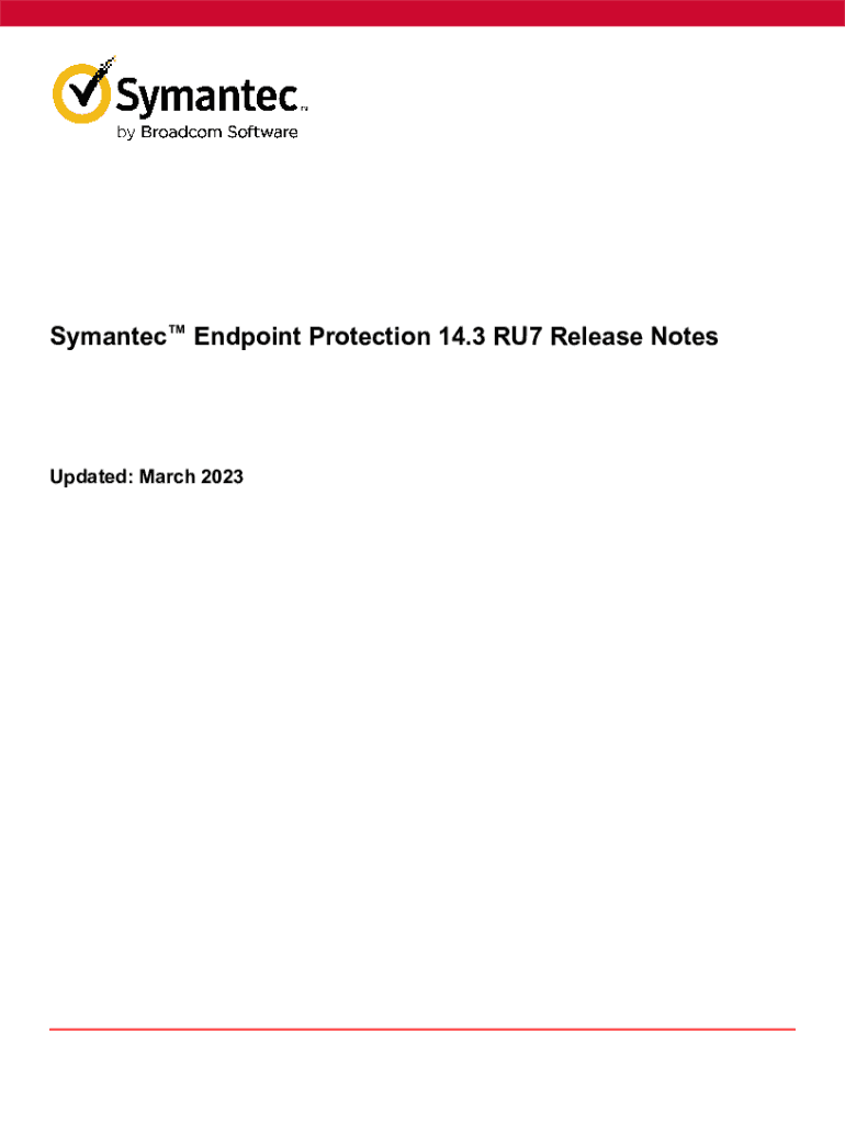 Symantec Endpoint Protection 14.3 RU7 Release NotesUpdated: March 2023Symantec Endpoint Protection 14.3 RU7 Release Testable of Contents What\'s new for Symantec Endpoint Protection 14.3 RU7?.............................................................