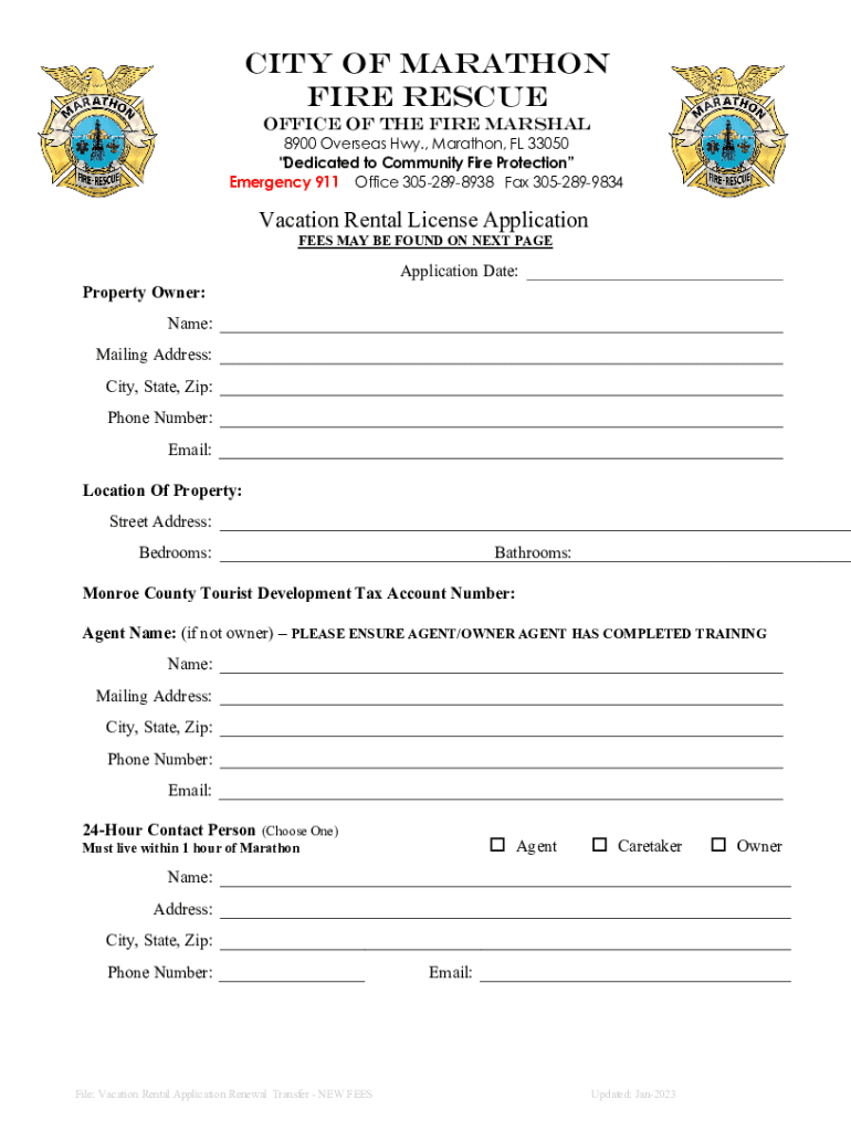 City of Marathon Fire Rescue Office of the Fire Marshal8900 Overseas Hwy., Marathon, FL 33050 \” Dedicated to Community Fire Protection Emergency 911 Office 3052898938 Fax 3052899834Vacation Rental