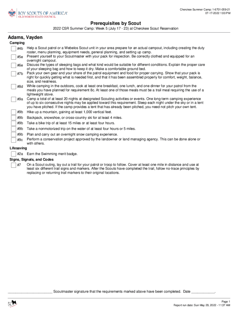 OLD NORTH STATE COUNCILPrerequisites by Scout