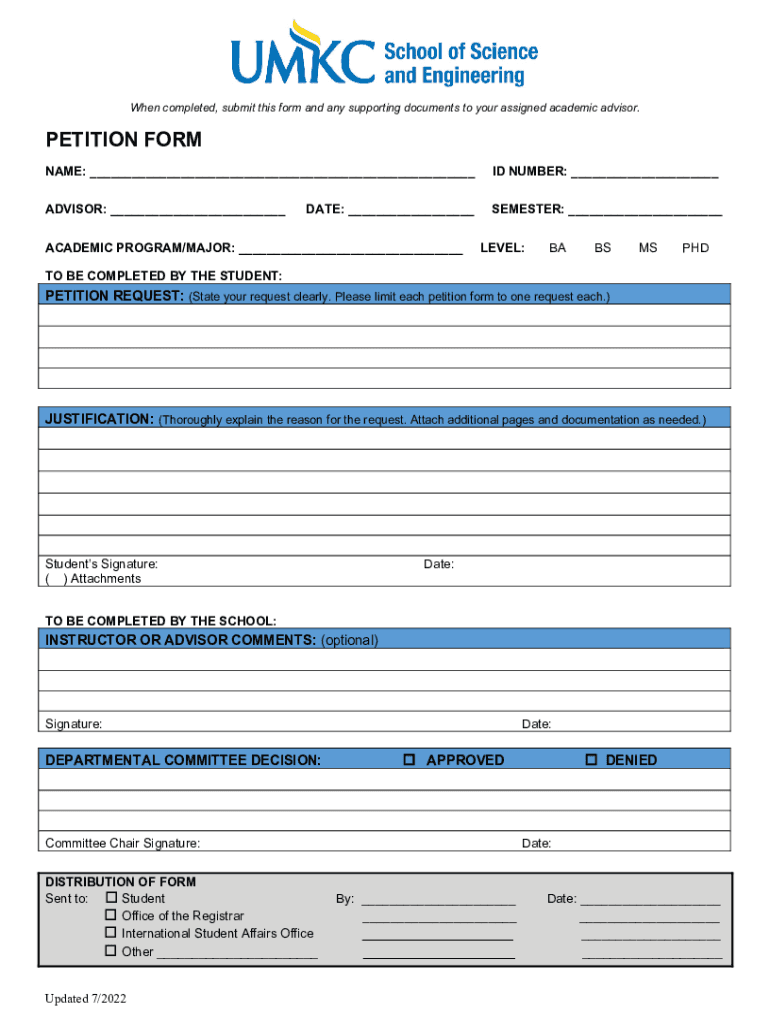 When completed, submit this form and any supporting documents to your assigned academic advisor. PETITION FORM