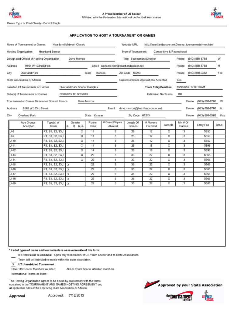 Affiliated with the Federation International de Football AssociationPlease Type or Print Clearly Do Not StapleAPPLICATION TO HOST A TOURNAMENT OR GAMES