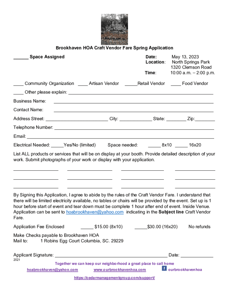Get the free Brookhaven HOA Craft Vendor Fare Spring Application
