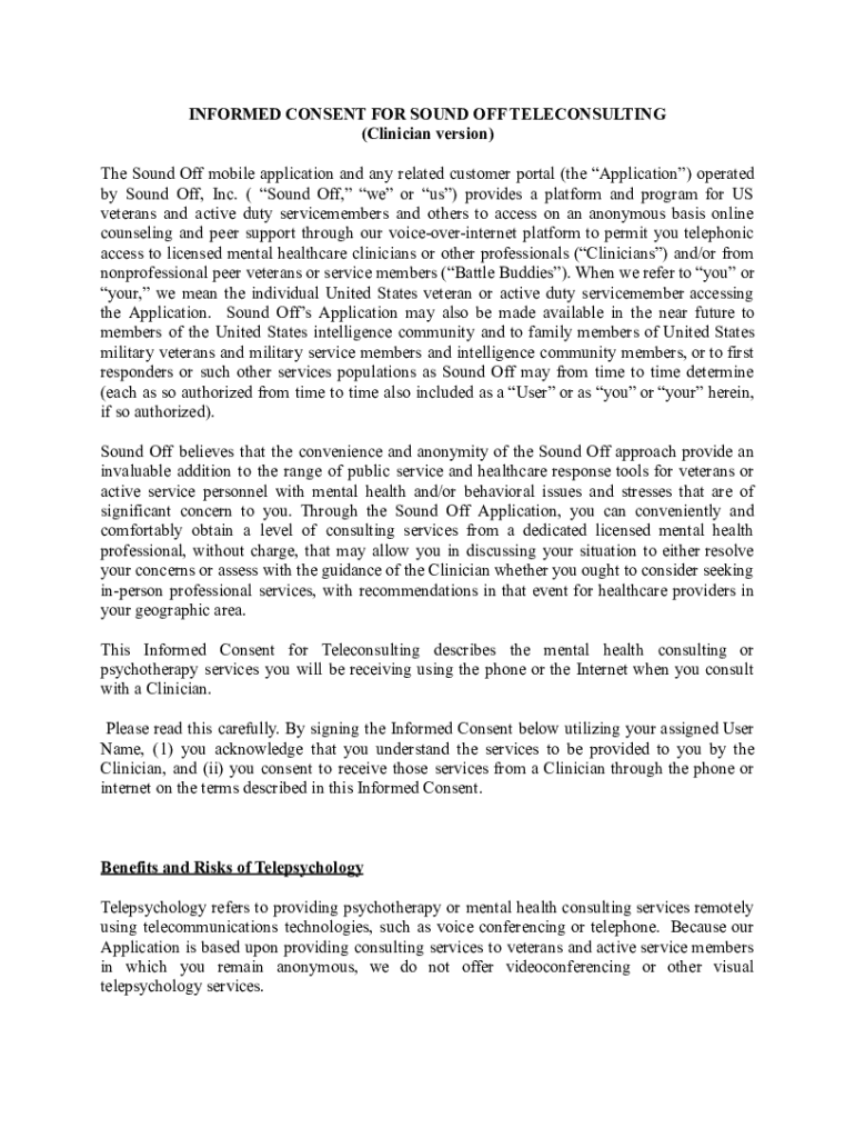 INFORMED CONSENT FOR SOUND OFF TELECOMMUTING