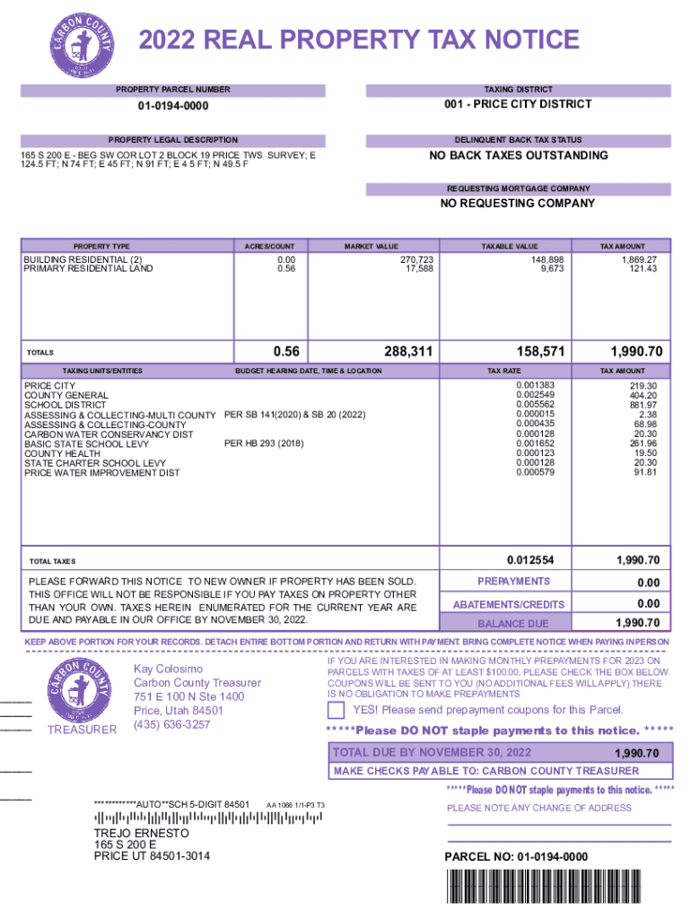 Get the free 2022 REAL PROPERTY TAX NOTICE