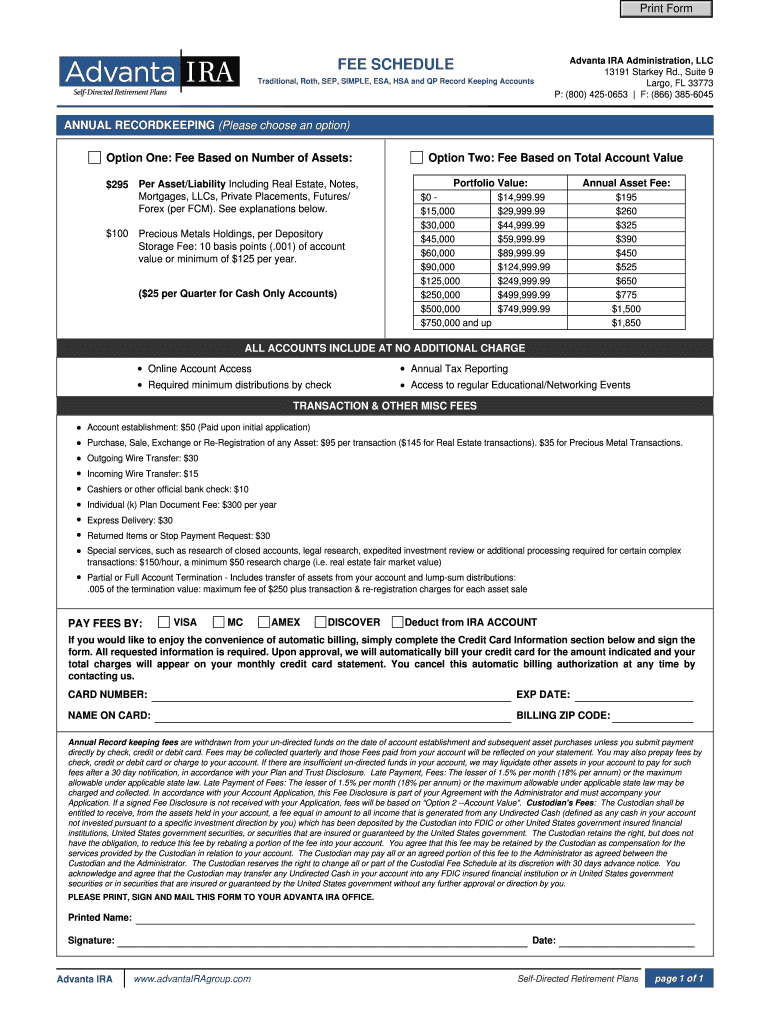 The Advanta IRA Fee Schedule plays a vital role in retirement planning and investment strategies. By being aware of associated fees, account holders can better manage their financial resources and avoid unexpected charges. This schedule provides a clear and organized record of annual and transaction fees, making it easier for users to understand costs that may vary based on assets and total account value.
