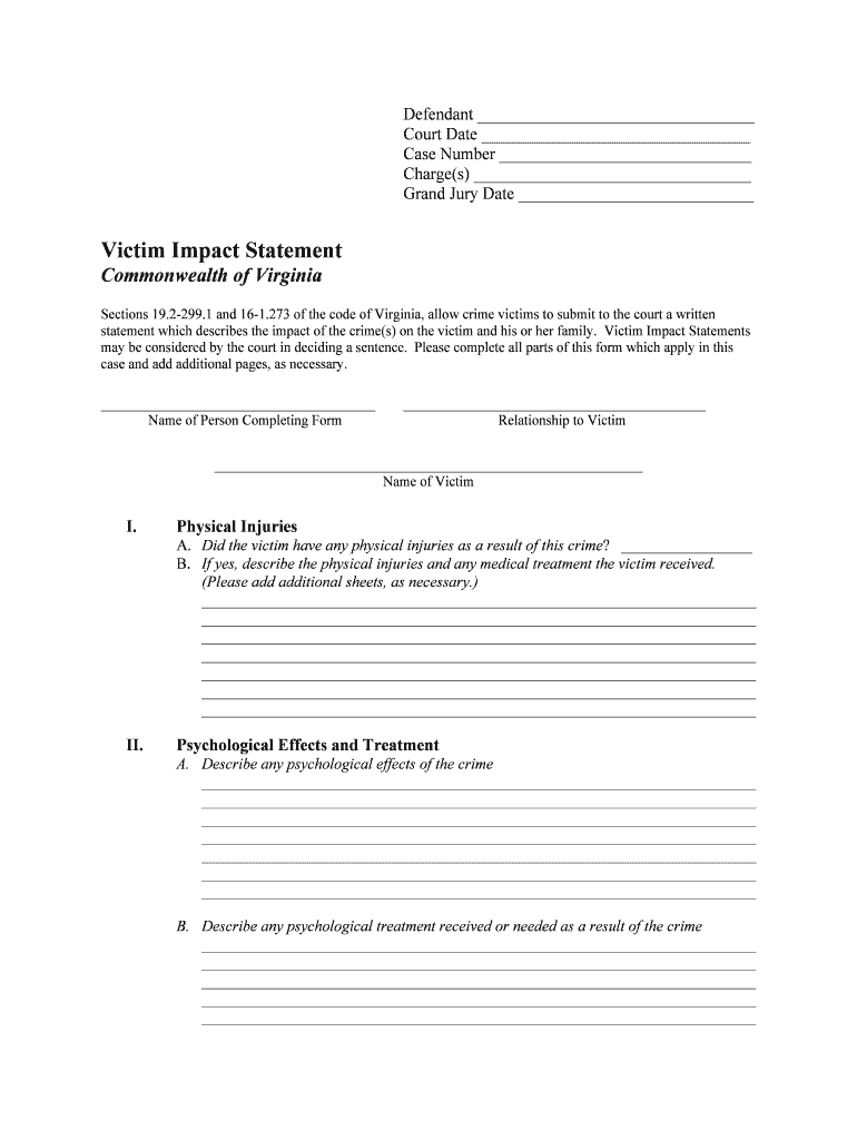 Get the free Virginia Victim Impact Statement Form