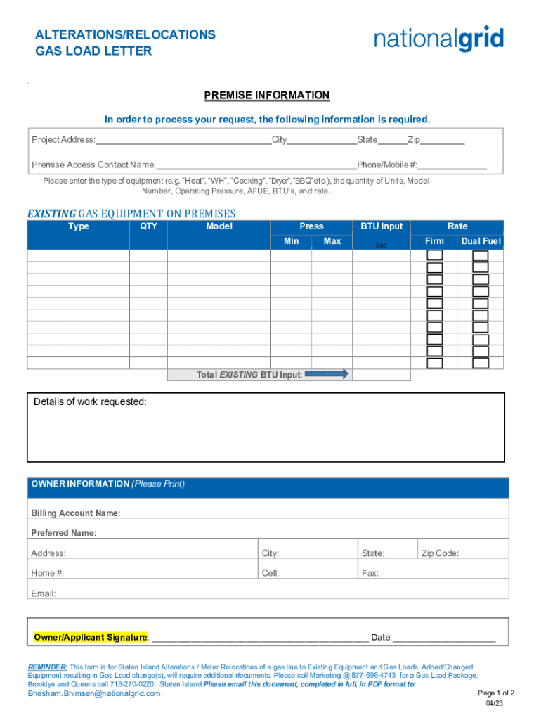 GAS LOAD LETTER