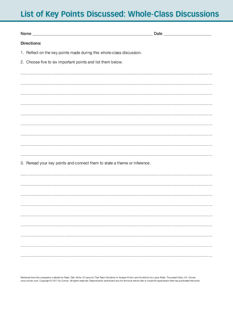 Get the free List of Key Points Discussed: Whole-Class Discussions