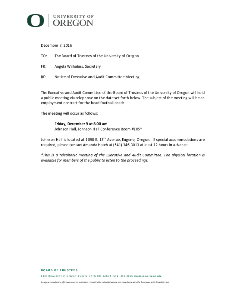 TheExecutiveandAuditCommitteeoftheBoardofTrusteesoftheUniversityofOregonwillhold