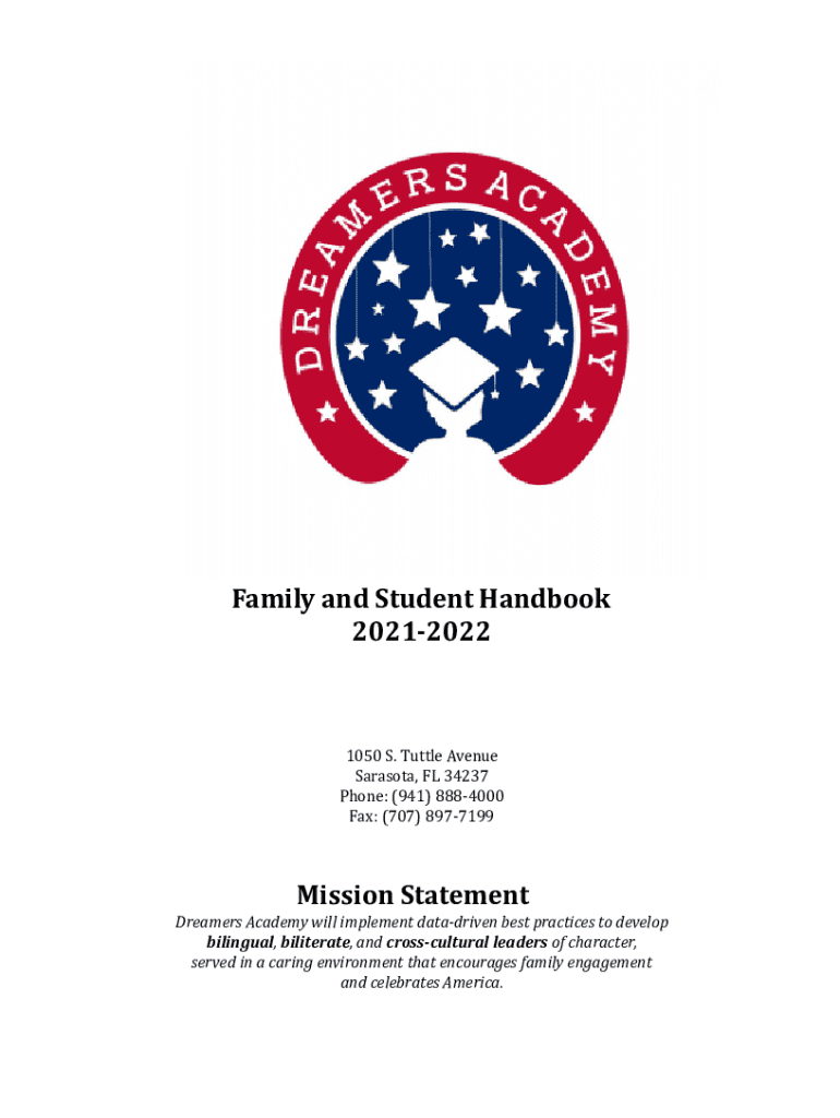 Family and Student Handbook 202120221050 S. Turtle Avenue Sarasota, FL 34237 Phone: (941) 8884000 Fax: (707) 8977199Mission Statement Dreamers Academy will implement data driven best practices developing