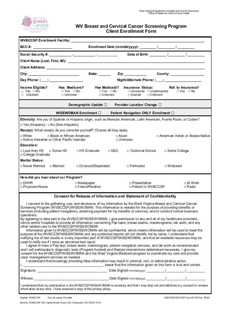Get the free WV Breast and Cervical Cancer Screening Program Client ...