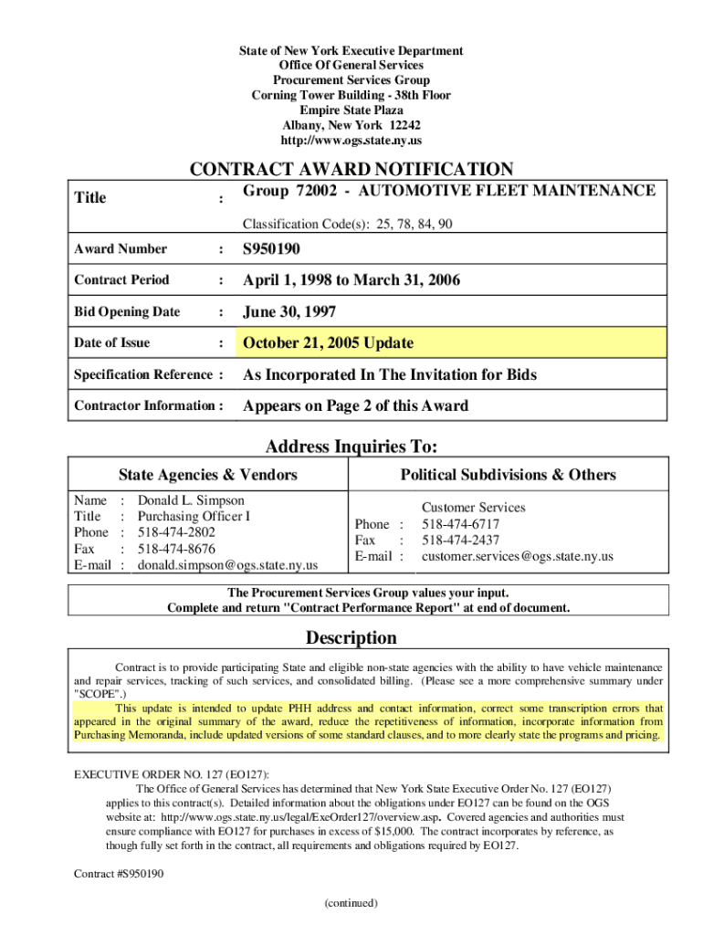 Get the free ogs.state.ny.usA single contract award providing for various...