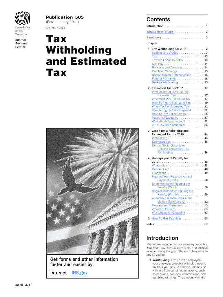 Publication 505 (Rev. January 2011) Department of the Treasury Internal Revenue Service Cat. No. 15008E Tax Withholding and Estimated Tax Contents Introduction. . . . . . . . . . . . . . . . . . .