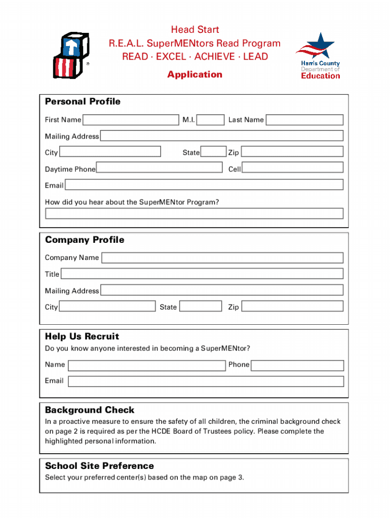 Get the free Head Start R.E.A.L. SuperMENtors Read Program READ