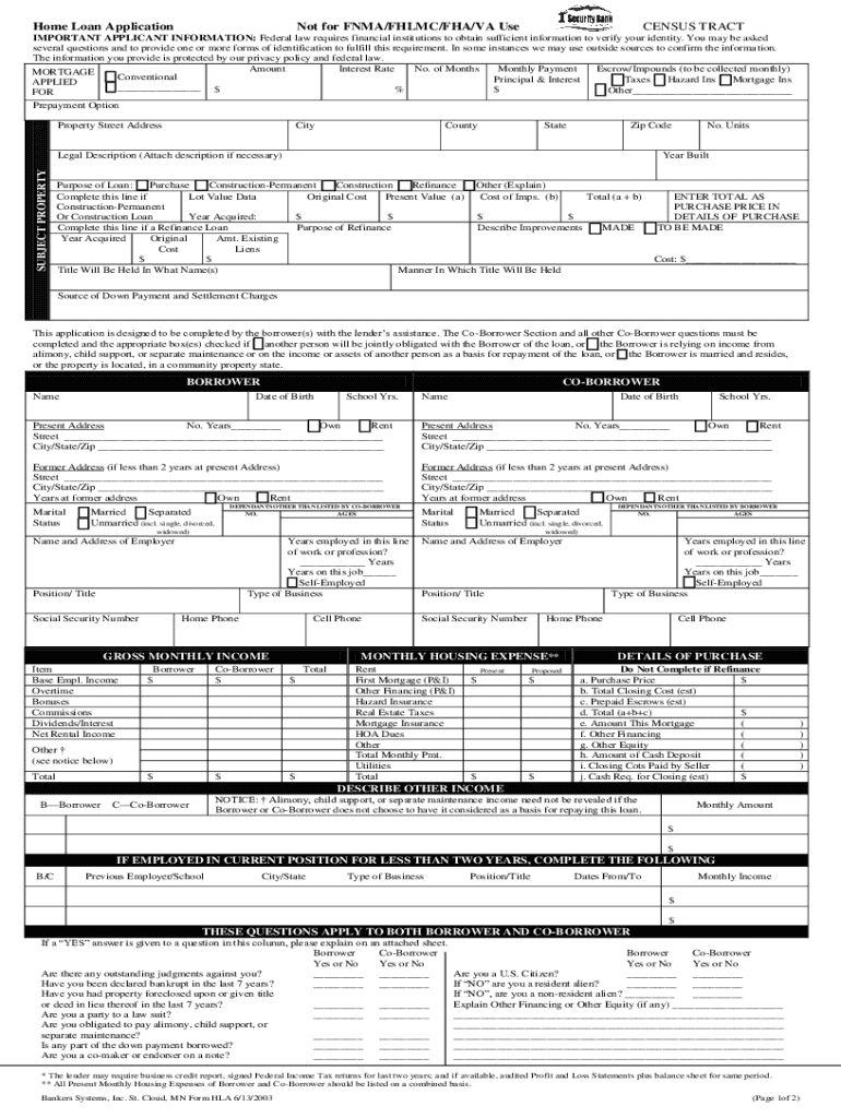 Home Loan Application for FNMA/FILM/FHA/VA Census TRACTIMPORTANT APPLICANT INFORMATION: Federal law requires financial institutions to obtain sufficient information to verify your identity. You may