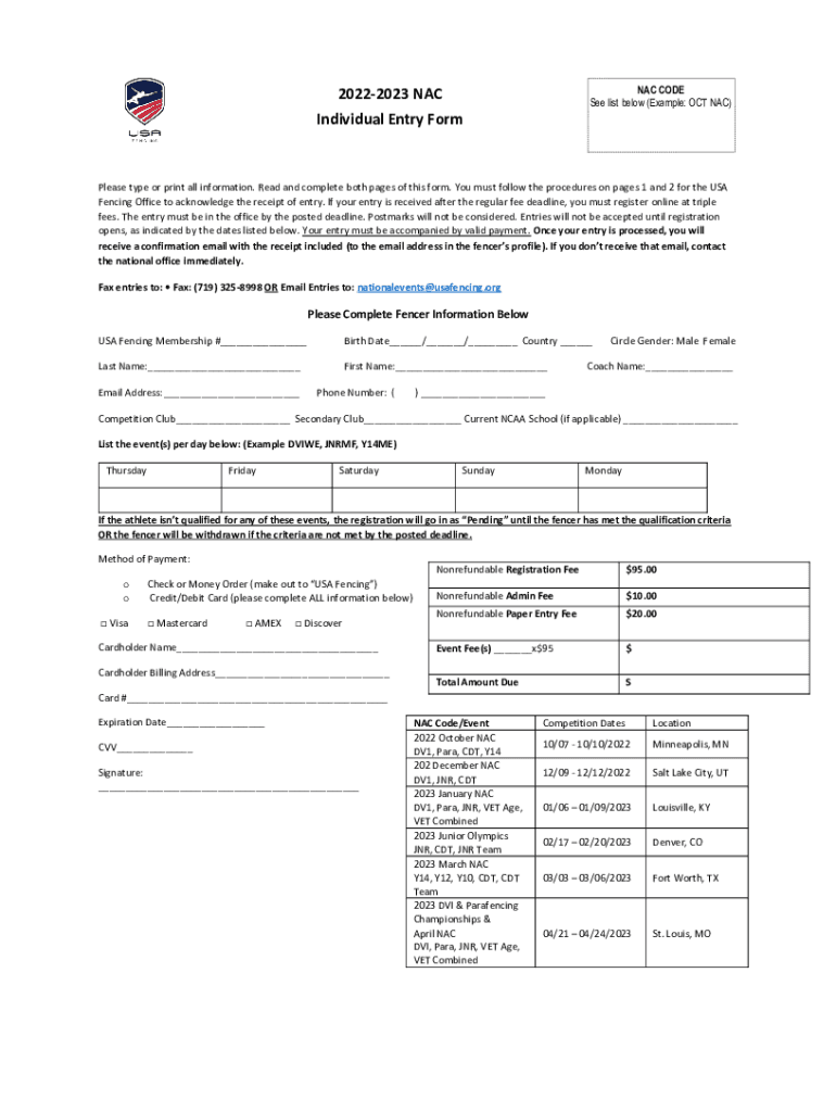 NAC CODE See list below (Example: OCT NAC)20222023 NAC Individual Entry Formulas type or print all information. Read and complete both pages of this form. You must follow the procedures on pages 1