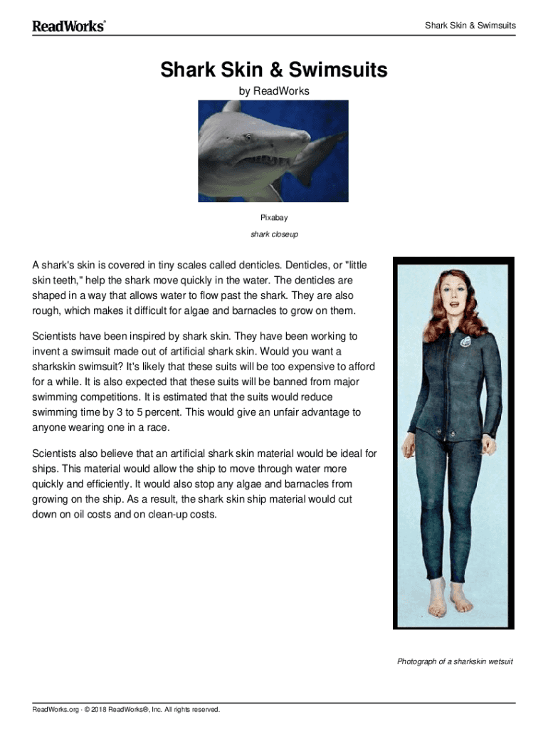 Shark Skin & SwimsuitsShark Skin & Swimsuits by ReadWorksPixabay shark closeup shark\'s skin is covered in tiny scales called tentacles. Tentacles, or \” little skin teeth, \” help the shark move