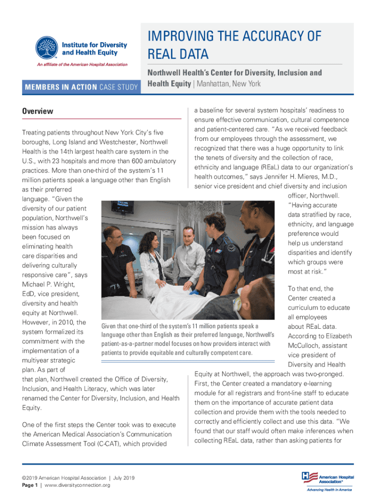 IMPROVING THE ACCURACY OF REAL DATA MEMBERS IN ACTION CASE STUDYOverviewNorthwell Health Center for Diversity, Inclusion and Health Equity | Manhattan, New York a baseline for several system hospitals