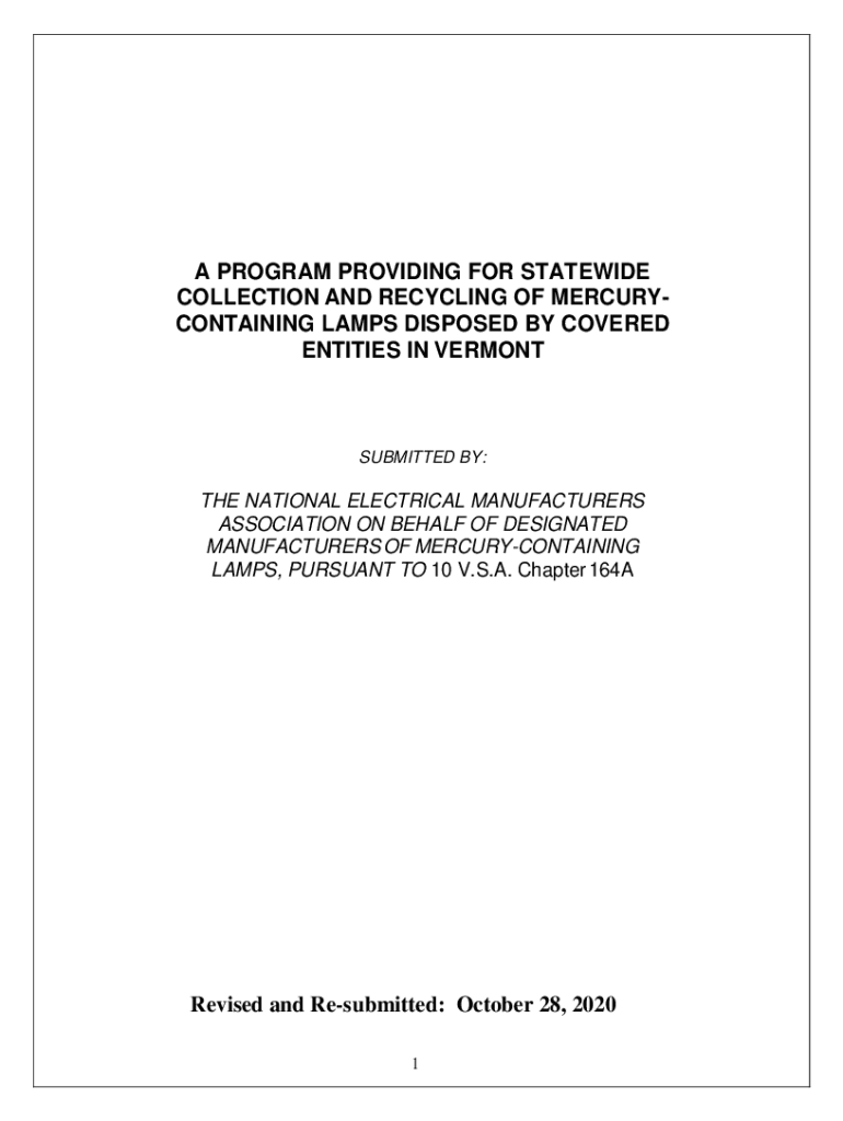A PROGRAM PROVIDING FOR STATEWIDE COLLECTION AND RECYCLING OF MERCURYCONTAINING LAMPS DISPOSED BY COVERED ENTITIES IN VERMONTSUBMITTED BY:THE NATIONAL ELECTRICAL MANUFACTURERS ASSOCIATION ON BEHALF