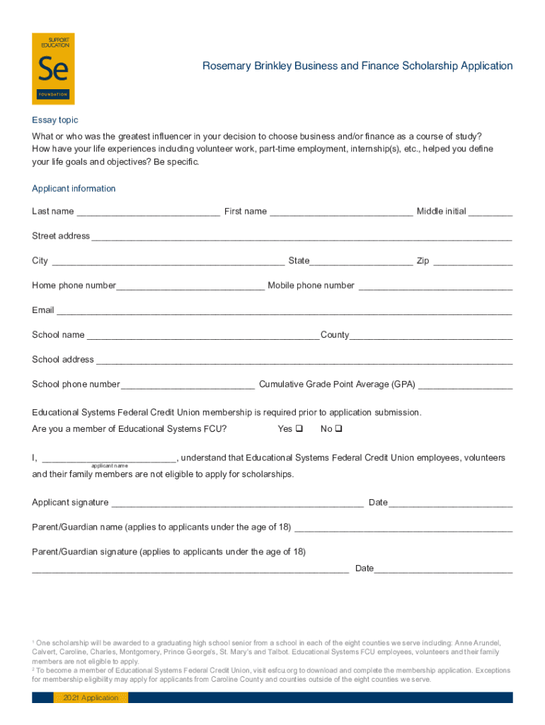 Rosemary Brinkley Business and Finance Scholarship ApplicationAbout the Rosemary Brinkley Business and Finance Scholarship Rosemary Brinkley served on the Board of Directors of Educational Systems
