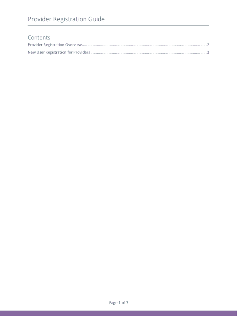 Provider Registration Guide Contents Provider Registration Overview ..................................................................................................................... 2 New User
