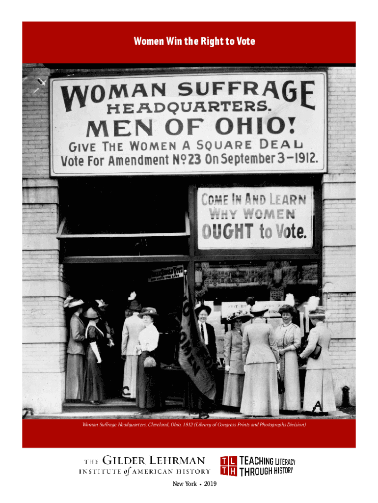Women Win the Right to Forewoman Suffrage Headquarters, Cleveland, Ohio, 1912 (Library of Congress Prints and Photographs Division)New York20192Women Win the Right to Vote BY STEVE SCHWARTZUNIT OVERVIEW