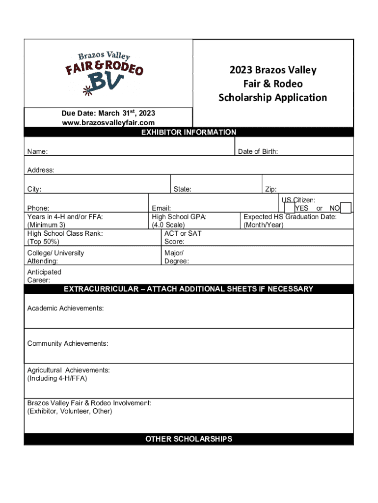 2023 General Scholarship Guidelines Important Dates to Remember March 31, 2023Application must be postmarked or emailed to BFR Staff by this date May 31, 2023Scholarship Recipients will be notified