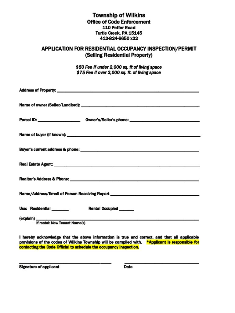 4128246650 x22APPLICATION FOR RESIDENTIAL OCCUPANCY INSPECTION/PERMIT