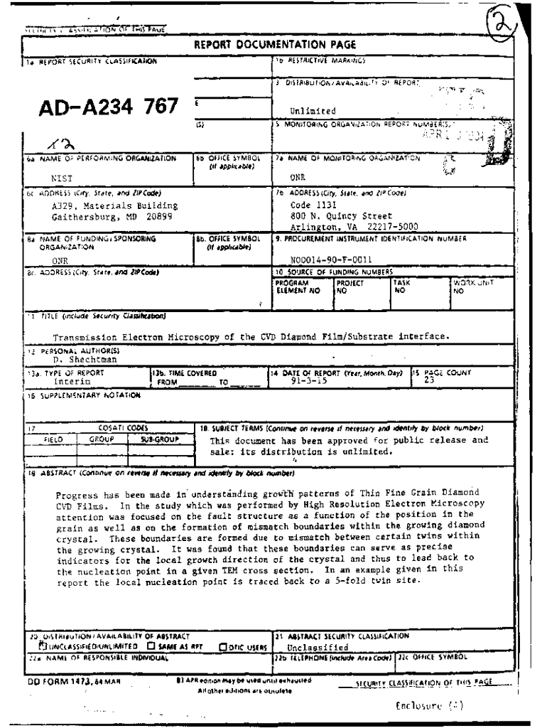 AON TMT.c.TP01OF TWISPAutIIiREPORT DOCUMENTATION PAGE)b RESTRICTIVE MARX\'MISREPORT SECURITY CLASSiFlCAIINJ DIST\'8u I1ON/ AVAt1. ADSL;TADA234 767 6a NAME OF PERFORM:NG ORGANIATIONUnlimited___(S)5